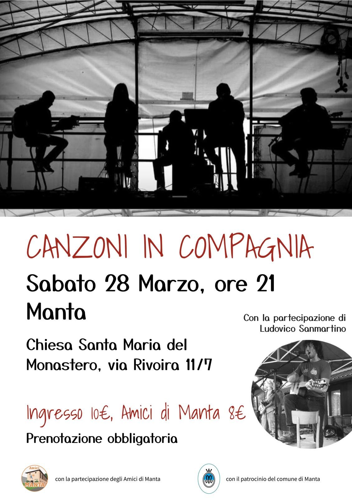 Sabato 28 marzo, serata musicale del gruppo “Canzoni in compagnia” in Santa Maria del Monastero a Manta, alle ore 21.